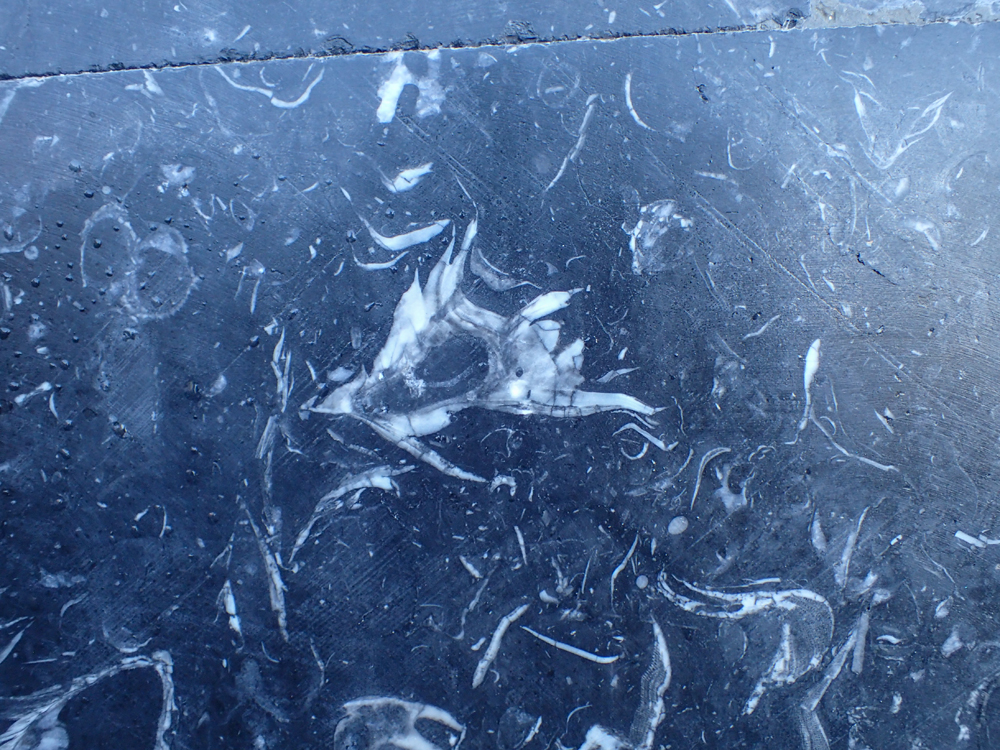 Bivalvos que crecieron entre el Jurásico superior y el Cretácico. Estos fósiles pueden observarse con tranquilidad en las paredes del paseo cercanas a la gijonesa playa de Poniente.